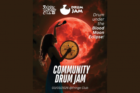 FoxyCat Alice與部落舞團——身著流動吉普賽哥德服裝,舞出融合張力;Helena Li以濃郁中東鼓點點燃夜晚。活動由日本敲擊樂手Kumi Masunaga與Drum Jam團隊帶領。每月都有80至100人在香港中環聚腳,合力營造熱鬧互助的社區氣氛。無需音樂經驗,鼓與打擊樂器由活動主辦提供。
