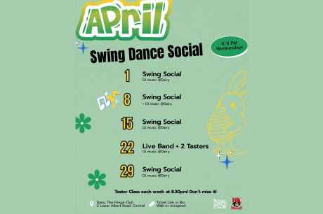 四月復活節假期,最適合用搖擺舞迎接歡樂。藝穗會與 Hong Kong Swings 每週三晚帶來搖擺舞之夜,無論是初學者還是熟手,都可以在舞池盡情享受Swing的節奏與快樂!活動包括半小時導師教學,讓你輕鬆掌握新舞步!其後數小時自由舞會,與親朋好友共享歡樂時光。四月春日限定優惠:購買同時段三張門票以上可享九折,月票亦享九折優惠。期待每星期三與你在藝穗會共度難忘夜晚!